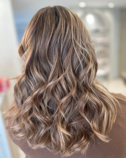 Unsere Signature-Balayage für eine mittlere Aufhellung. Sichtbar mehr Dimension, lebendige Farbreflexe und ein moderner Glow, der deine Gesichtszüge perfekt unterstreicht.